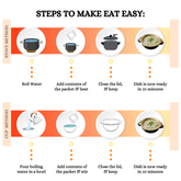 Prepare easily using a stove, microwave, a hot plate or a kettle, anywhere in the world.